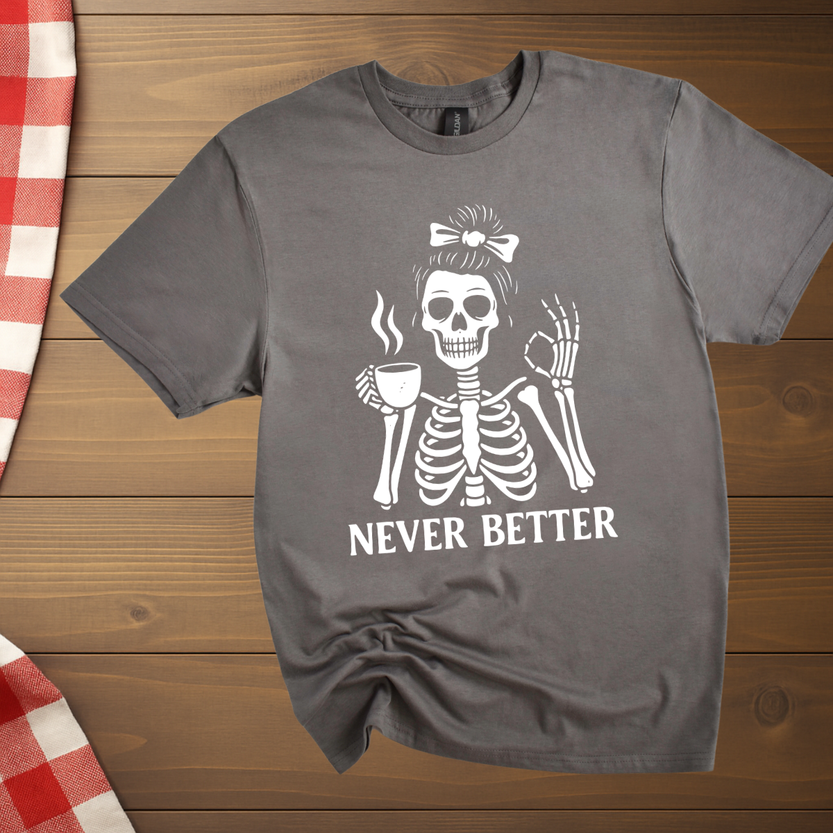 Never Better Skeleton Coffee T-Shirt